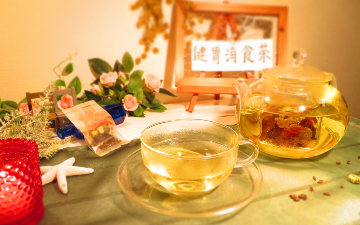 おいしい美健ブレンド茶のできあがりです!健康マーケットの美健ブレンド茶とともに充実したひと時をお過ごしください。