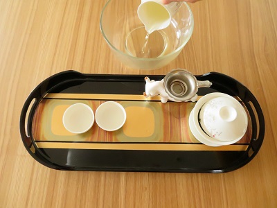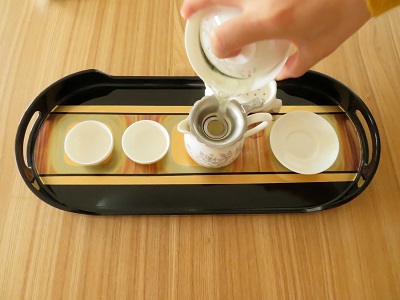 【ポイント】茶葉の香りを最大限に生かすために使用する茶器類を熱湯で温めます。