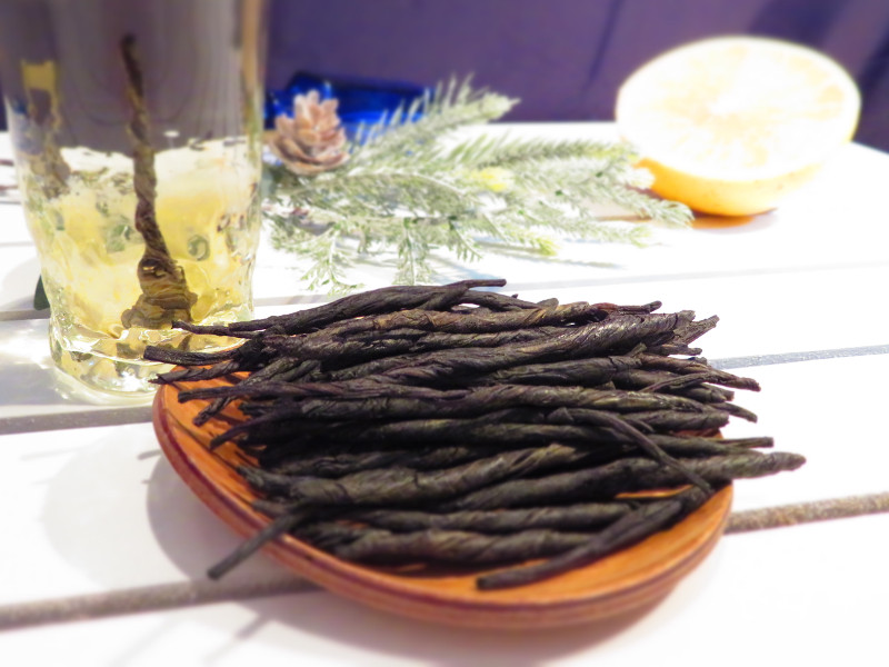 前の手順で取り出した茶葉1本を容器に入れます。この時、茶葉を入れすぎると味が強すぎてしまいますのでご注意ください。