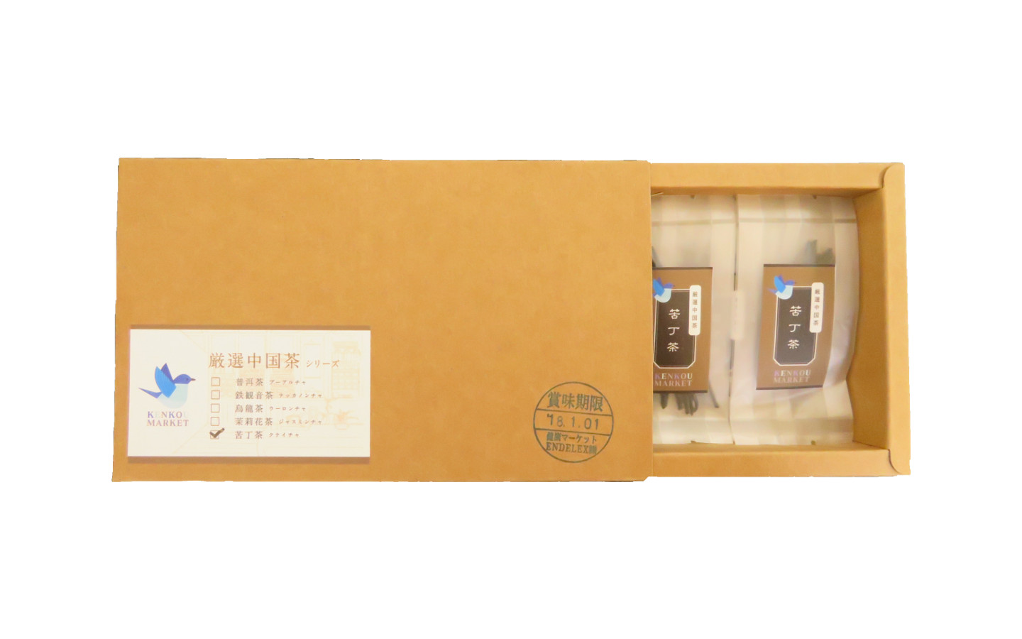 健康マーケットでご購入頂いたお茶パックと茶器を用意します。 苦丁茶(くうていちゃ/くちょうちゃ)はすごく味がきついので、なるべく大きな容器をご用意ください。この紹介では1ℓの容器を使用しています。