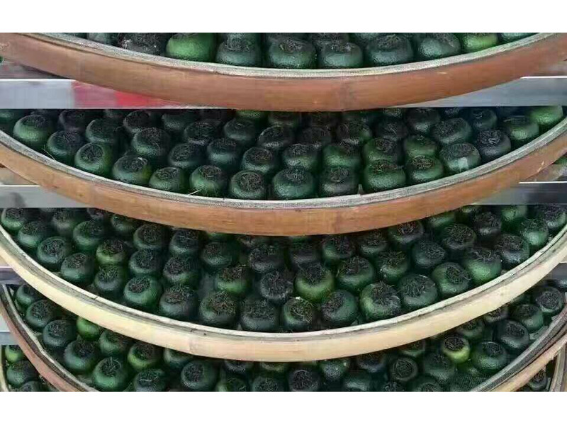 約80℃の白湯を淹れます。一回目とは違い非常に深みのある色が出てきます。 また独特の陳皮の香りもあたり一面に漂います。目、鼻でお茶を楽しんでください。