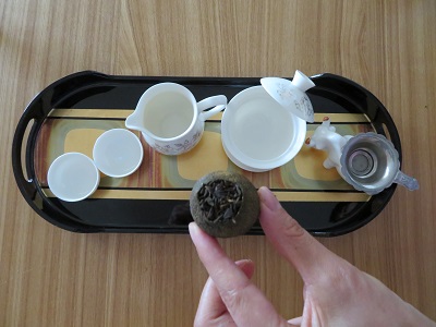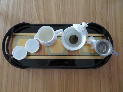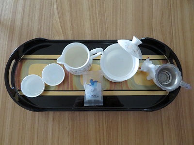 健康マーケットでご購入頂いたお茶パックと茶器を用意します。 香が非常に強いお茶ですので大き目の茶器でも問題ありません。